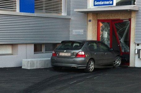 Një veturë e vogël është përplasur drejtë në dyert e një stacioni të policisë në Yverdon të Zvicrës. Nuk raportohet për të lënduar. Për të aksidentuarin thuhet të ketë probleme mendore.