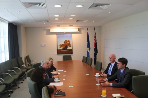 Ndërkaq, në Kanberra, Murati dhe ambasadori i Kosovës në Australi, Sabri Kiçmari janë pritur në Departamentin për Punë të Jashtme dhe Tregti të Qeverisë së Australisë nga Louise Hand, udhëheqëse e Divizionit për Evropë, dhe Kevin Magee, udhëheqës i seksionit për Evropën Veriore, Jugore dhe Lindore.