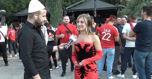 Një tifoze mjaft e veçantë që përkrah kombëtaren shqiptare, e veshur me flamurin shqiptar, ka ardhur posaçërisht nga Brukseli për ta mbështetur Shqipërinë në përballjen me Çekinë, shkruajnë mediat shqiptare.