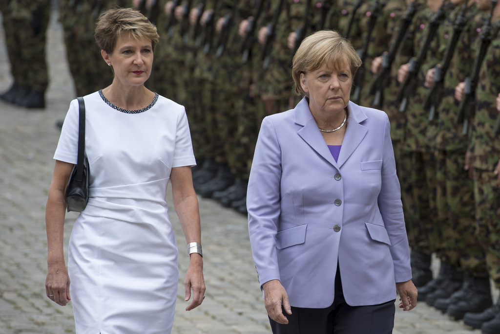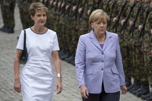 Kancelarja gjermane, Angela Merkel, ka thënë të jetë Zvicra një model për BE-në dhe Gjermaninë për sa i përket trajtimit të refugjatëve. Kjo ka të bëjë me kohën e përpunimit të kërkesave për azil dhe shpërndarjen e refugjatëve në vend, tha Merkel në Bernë.