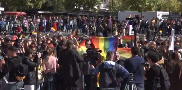 Disa të tillë janë parë me flamuj, ku shihej një shenjë e kuqe. si simbolikë e kundërshtimit të komunitetit LGBTI.