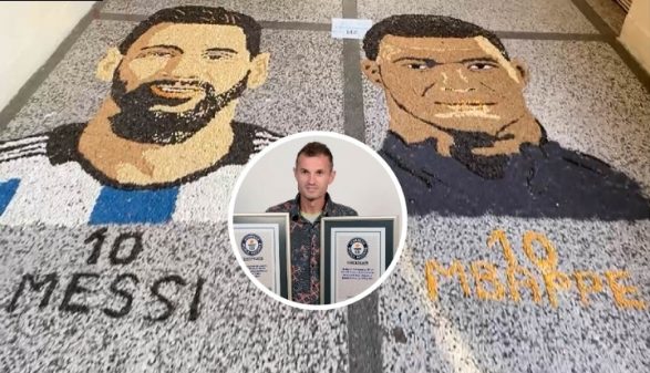 Messi e Mbappe bashkohen në një vepër arti nga artisti kosovar, fitues i Guiness-it