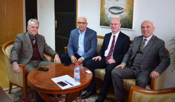 Rektori i Univerisitetit “Nënë Tereza” në Shkup, Aziz Pollozhani, në një takim pune priti Sabri Kiçmarin, ish-ambasador i Kosovës në Austri dhe Australi, Agron Buxhaku, drejtorin e Qendrës për menaxhim me kriza dhe ish-ambasador i Maqedonisë në Francë dhe zëvendësdrejtorin e Agjencisë së Emigracionit të Maqedonisë, Osman Shukriu.