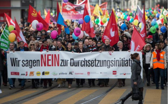 Pasditën e të shtunës, disa mijëra veta kanë protestuar në Cyrih kundër “Inicativës për Zbatim të Dëbimit të të Huajve Kriminelë”, të njohur si iniciativë e SVP-së