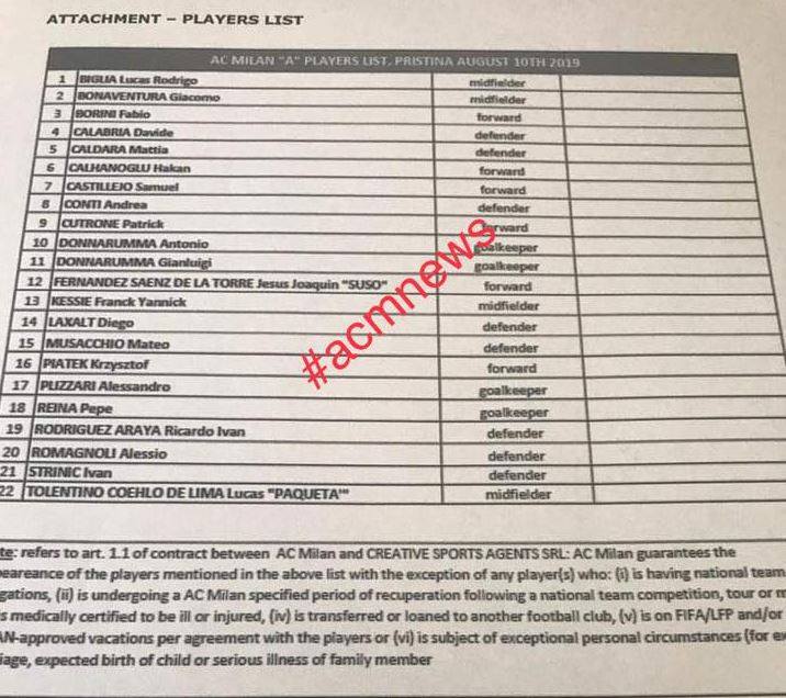 Trajneri i ri i kuqezinjve, Marco Giampaolo ka ftuar thuajse të gjithë skuadrën, të cilët do të zbresin në fushë ndaj kampionëve të Superligës kosovare.