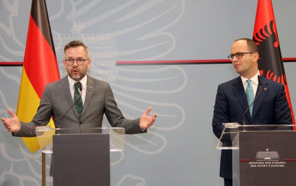 Michael Roth, ministri i Shtetit për Çështjet Europiane në Ministrinë e Jashtme Federale, rikonfirmoi në Tiranë mbështetjen e Gjermanisë ndaj Shqipërisë në procesin e reformave, por ai nuk la të kuptohet se si do të jetë vota e Gjermanisë në Këshillin Europian, në qershor lidhur me hapjen e negociatave të anëtarësimit mes Shqipërisë dhe BE, shkruan Deutsche Welle.