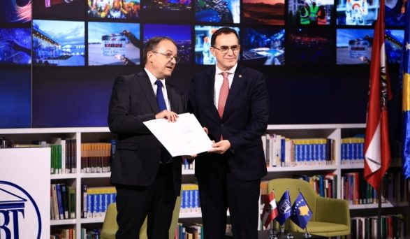 Ambasadori i Austrisë në Kosovë, Georg Schnetzer, i ka dorëzuar sot Medaljen e Artë të Meritave të Republikës së Austrisë Profesor Edmond Hajrizit, themelues dhe rektor i Universitetit për Biznes dhe Teknologji (UBT). Çmimi i lartë shtetëror vjen si vlerësim për kontributin e tij shumëvjeçar në zhvillimin e arsimit të lartë dhe forcimin e marrëdhënieve akademike e ekonomike ndërmjet Austrisë dhe Kosovës.