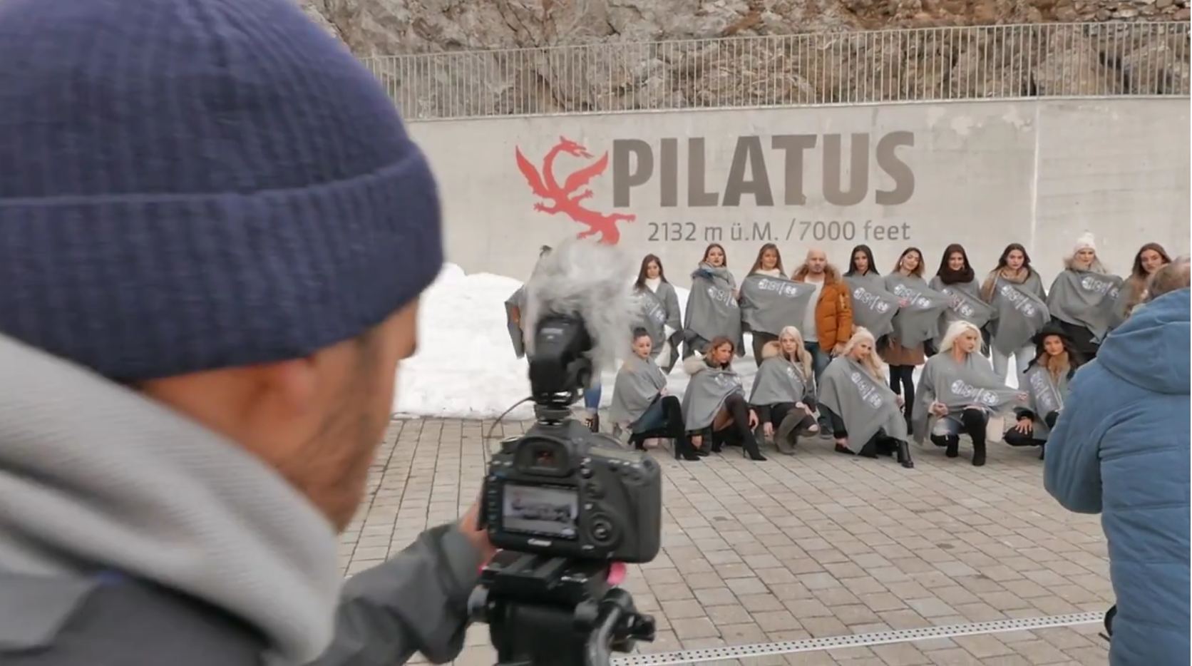 “Pilatusi ka mirëpritur kandidatet për “Miss shqiptarja. Foto janë xhiruar në Pilatuskulm”, shkruan gazeta zvicerane e cila bën një xhirim rreth një minutë me vajzat dhe producentin e këtij spektakli, Ilir Gecin.
