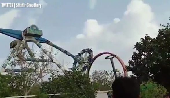 Videoja tmerruese e tregon momentin kur në parkun Kankaria Amusement në Ahmedabad të Indisë lavjerrësi ndahet në dysh dhe përplaset me hekurat mbajtëse, përcjell albinfo.ch.