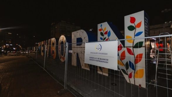 Monumenti NEWBORN simbolikisht “burgoset” si shenjë proteste ndaj Gjykatës Speciale