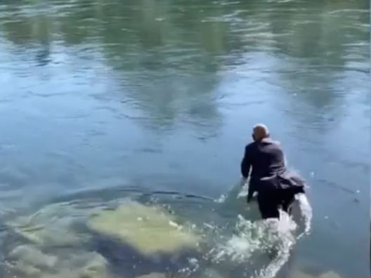 “Mr. Corona” hidhet me rroba pune në lumin e ftohtë të Bernës