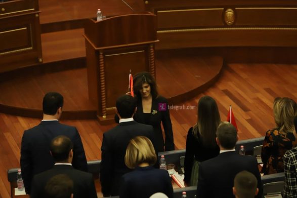 Në kohën kur deputetët e Kuvendit të Kosovës po bënin betimin si deputetë të Kuvendit të Republikës së Kosovës, deputetet Time Kadrijaj dhe Ganiemete Musliu u kujdesën t’i bënin një “befasi” liderit të VV-së, Albin Kurti.
