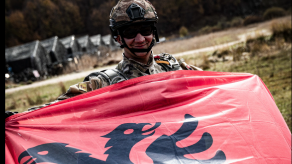 NATO përmes një postimi në rrjetin social në Facebook ka publikuar fotografinë e një ushtari, i cili mban në duar flamurin kuq e zi.