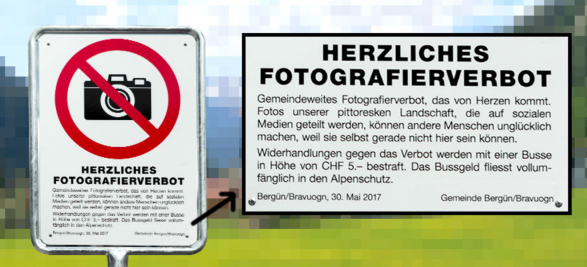 Autoritetet lokale shpjegojnë se njerëzit që i shohin fotot e Bergun do të ndihen të pakënaqur për shkak se nuk janë në gjendje për ta vizituar, kështu që qeveria e qytetit vendosi të ndalojë fotografimin, shkruan albinfo.ch.