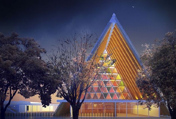 Projektin e saj e ka bërë arkitekti japonez Shigeru Ban, i njohur për ndërtimet me materiale të lira. Ai deri më tash, me material alternativ ka realizuar vepra si salla koncertesh muze, shtëpi dhe ura, kryesisht pas katastrofave natyrore që kanë goditur vendet e ndryshme.