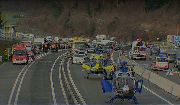 Një përplasje masive me më shumë se 20 automjete ka ndodhur në autostradën A2 në Lucern mëngjesin e së premtes.