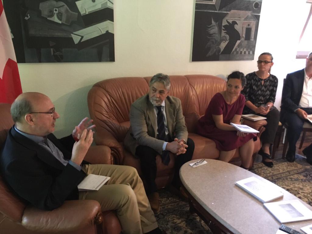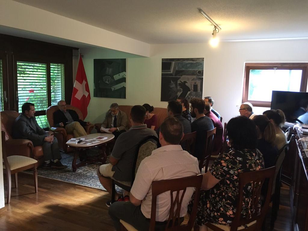 Pas fjalimit të mirëseardhjes nga ambasadori shqiptar Iliri Gjoni, Z. Meuwly paraqiti temat me të cilat është marrë ISEAL kohëve të fundit, mes tjerash “Kosova, histori e pranishme e një shteti”. Ishte studim mjaft interesant, ku Kosova shikohet jo vetëm nga zhvillimi i brendshëm, por e ndërlidhur me zhvillimet në Europë, e sidomos në Unionin Europian.