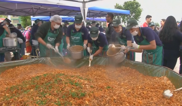 Punëtorët gatuan në një enë të madhe. Ata pretendojnë se kanë formuar grupin më të madh në botë në përgatitjen e ushqimit.
