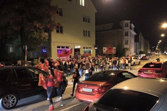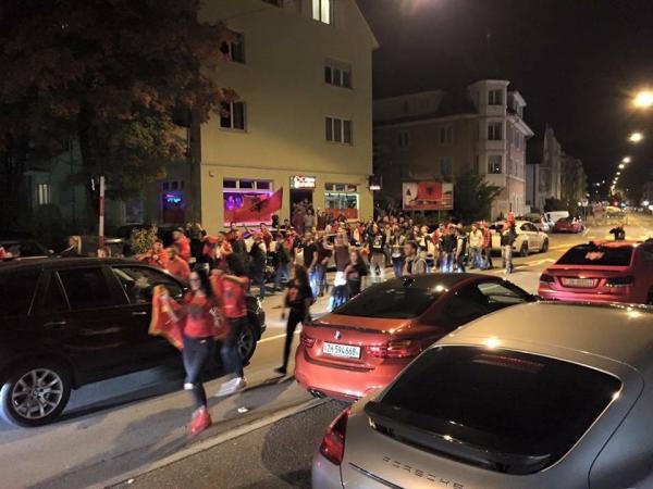 Sherri u ndez pas përfundimit të transmetimit të drejtpërdrejtë të ndeshjes që u bë në disa lokale në Oerlikon të Cyrihut . Tifozët nga të dyja kampet e kanë ndjekur me shumë interes dhe me emocione ndeshjen, shkruan policia në një komunikatë për medie të lëshuar të premten. Madje edhe gjatë ndeshjes kanë ndodhur provokime para lokaleve ku bëhej transmetimi.