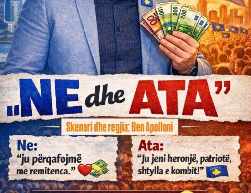 Në posterin promovues theksohet edhe ironia tipike e shfaqjes, ku njëra palë shprehet: “Ju përqafojmë me remitenca”, ndërsa pala tjetër përgjigjet: “Ju jeni heronjë, patriotë, shtylla e kombit!” – një mesazh që e bën komedinë edhe më të afërt për publikun.