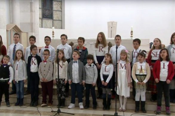 Para fillimit të ceremonisë zyrtare, pati një program me këngë e recitime nga fëmijët dhe kori i famullisë së Prishtinës.