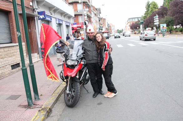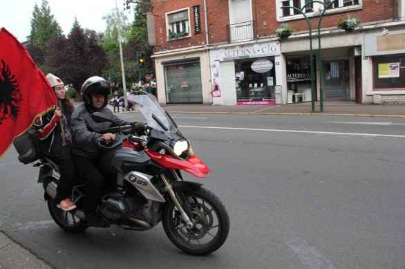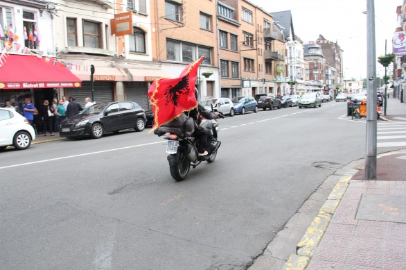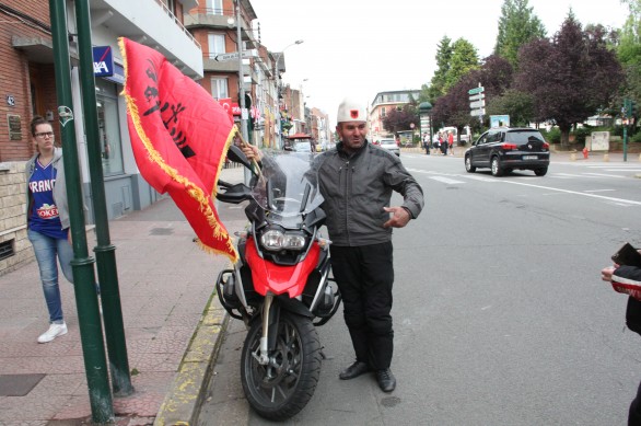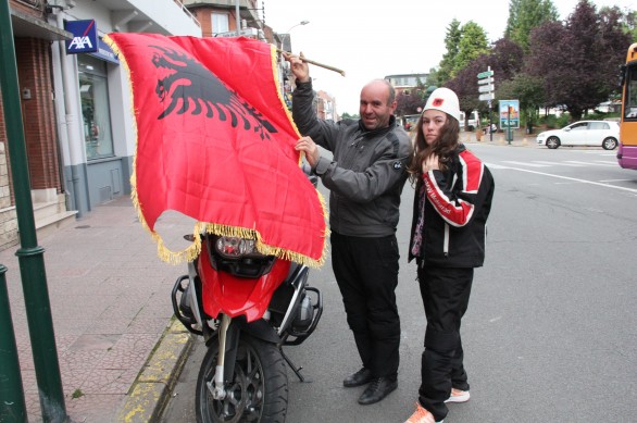 Ajvaz Mehmeti nga Velesi i Maqedonisë, fshati Dollqishtë ka bërë rrugën më të largët. Ai me të bijën Nerxhivanen 14 vjeçare kanë ardhur me motor nga vendlindja. “Po vijmë direkt nga pika më e skajshme e Shqipërisë reale” thotë Ajvazi i entuziazmuar tek mbështjell motorin e tij me flamurin kombëtar. “Flamurin e kam ble në Krujë ndërsa shtizën e kam marrë në një mal rrugës”, thotë ai për albinfo.ch.