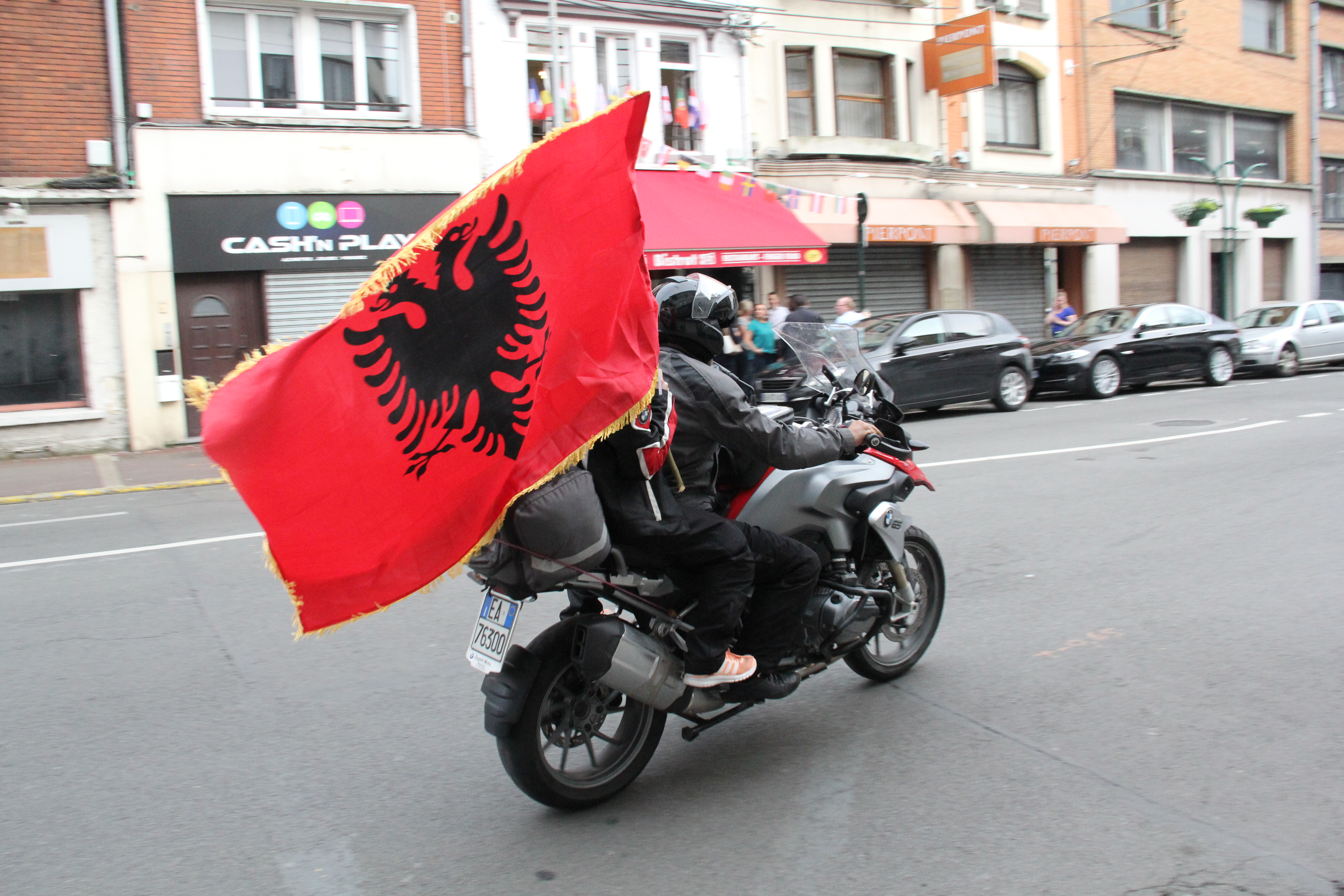Ajvaz Mehmeti nga Velesi i Maqedonisë, fshati Dollqishtë ka bërë rrugën më të largët. Ai me të bijën Nerxhivanen 14 vjeçare kanë ardhur me motor nga vendlindja. “Po vijmë direkt nga pika më e skajshme e Shqipërisë reale” thotë Ajvazi i entuziazmuar tek mbështjell motorin e tij me flamurin kombëtar. “Flamurin e kam ble në Krujë ndërsa shtizën e kam marrë në një mal rrugës”, thotë ai për albinfo.ch.