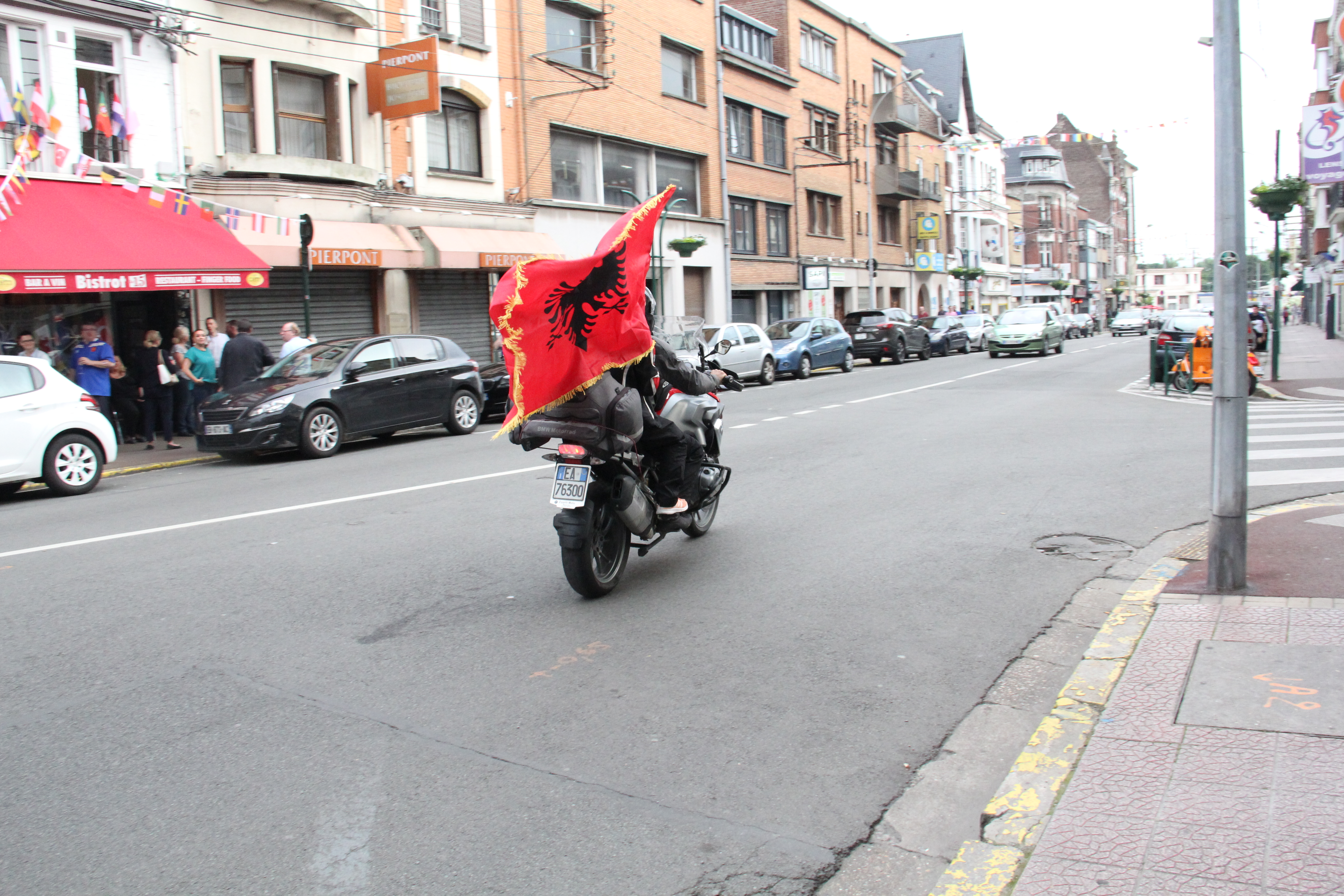 Pastaj niset tatëpjetë rrugës ndërkohë që palat e flamurit valojnë mbi shtizën e improvizuar. Pak më tutje grupe tifozësh shkojnë e vijnë rrugëve duke valuar flamujt kuq e zi.