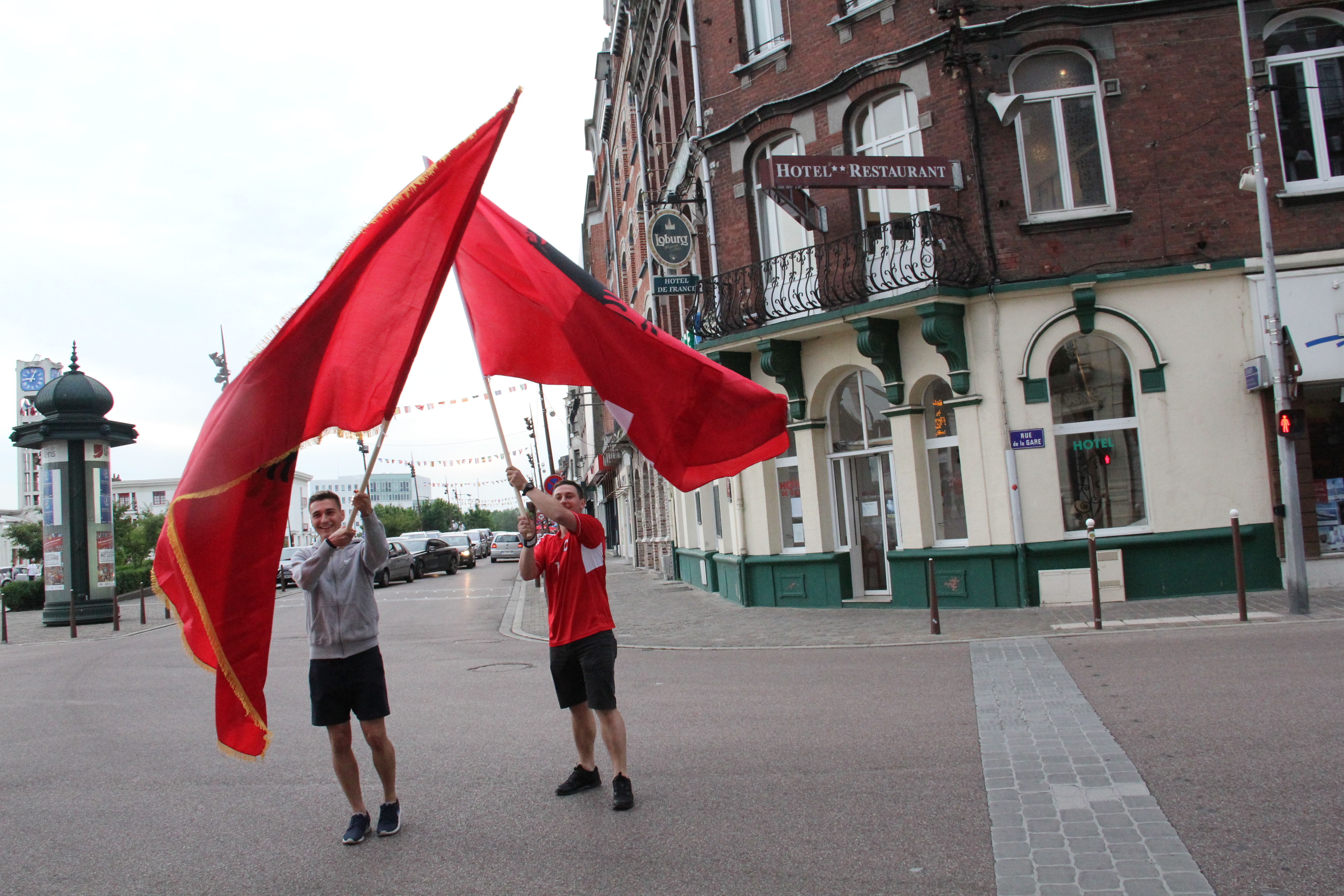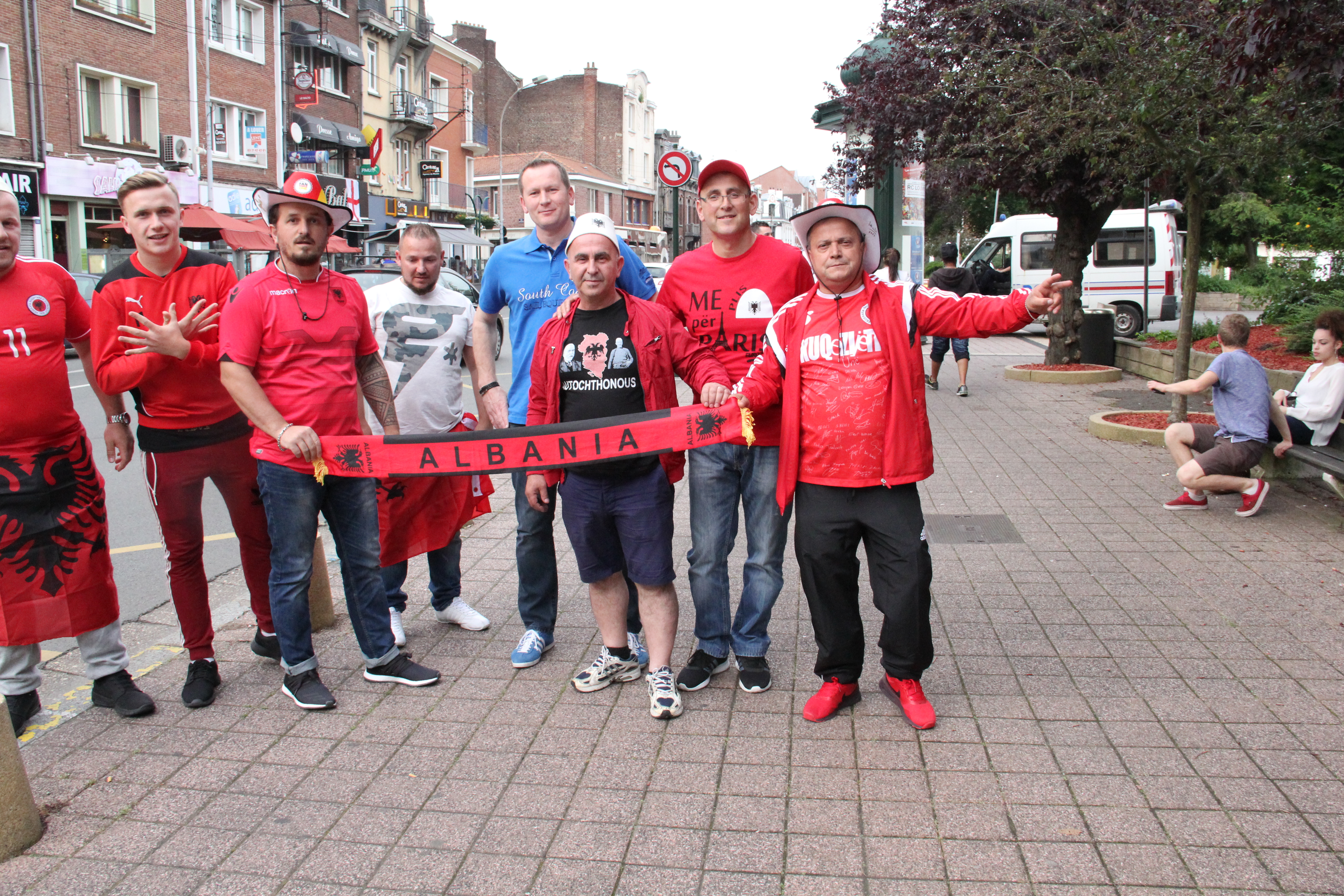 Atmosferë e ndezur mbretëron gjithandej në rrugët e qytetit Lens. Në njërin nga lokalet ku janë tubuar tifozët shqiptarë tashmë ia kanë “krisur” këngës me çifteli dhe brohoritjet s`kanë të ndalur: “Shqipëri-Shqipëri”, “O sa mirë me qenë shqiptar” etj. Edhe fishkëllimat me “vuvuzela” kanë nisur të dëgjohen ashtu si dhe sirenat e makinave.