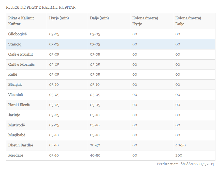 Referuar raportit nga Qendra Kombëtare për Menaxhim Kufitar, pritjet me të gjata për të hyrë në Kosovë mëngjesin e sotëm janë te Dheu i Bardhë, deri në 30 minuta, kurse në Merdar 40 deri në 50 minuta pritje.