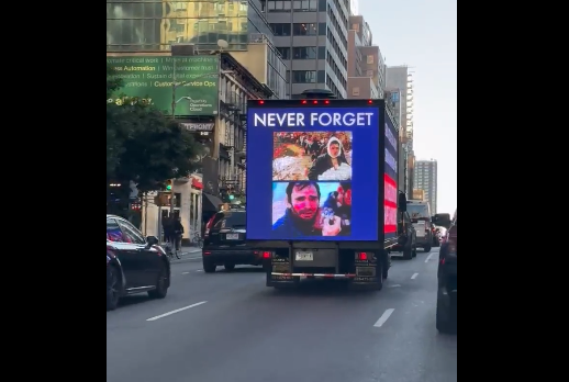 Në qendër të New York-ut është parë një kamion që shfaq reklama të ndryshme.