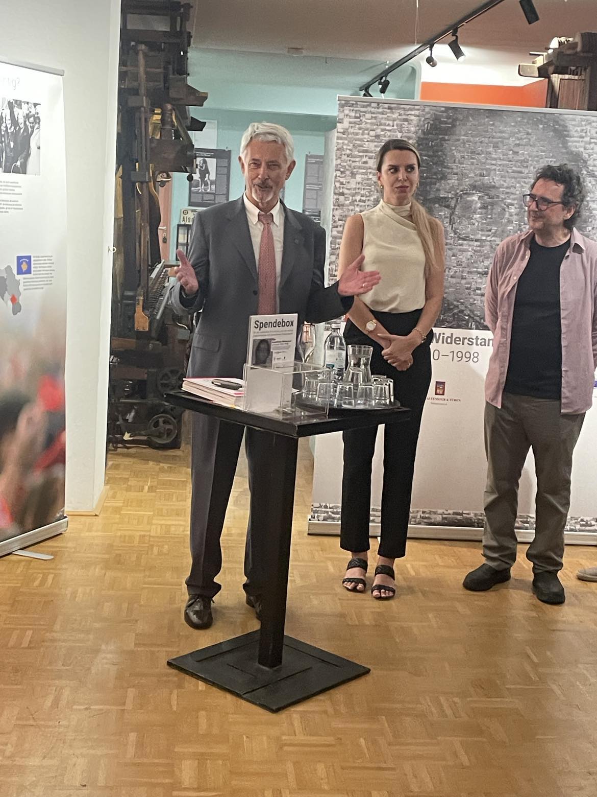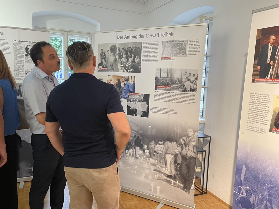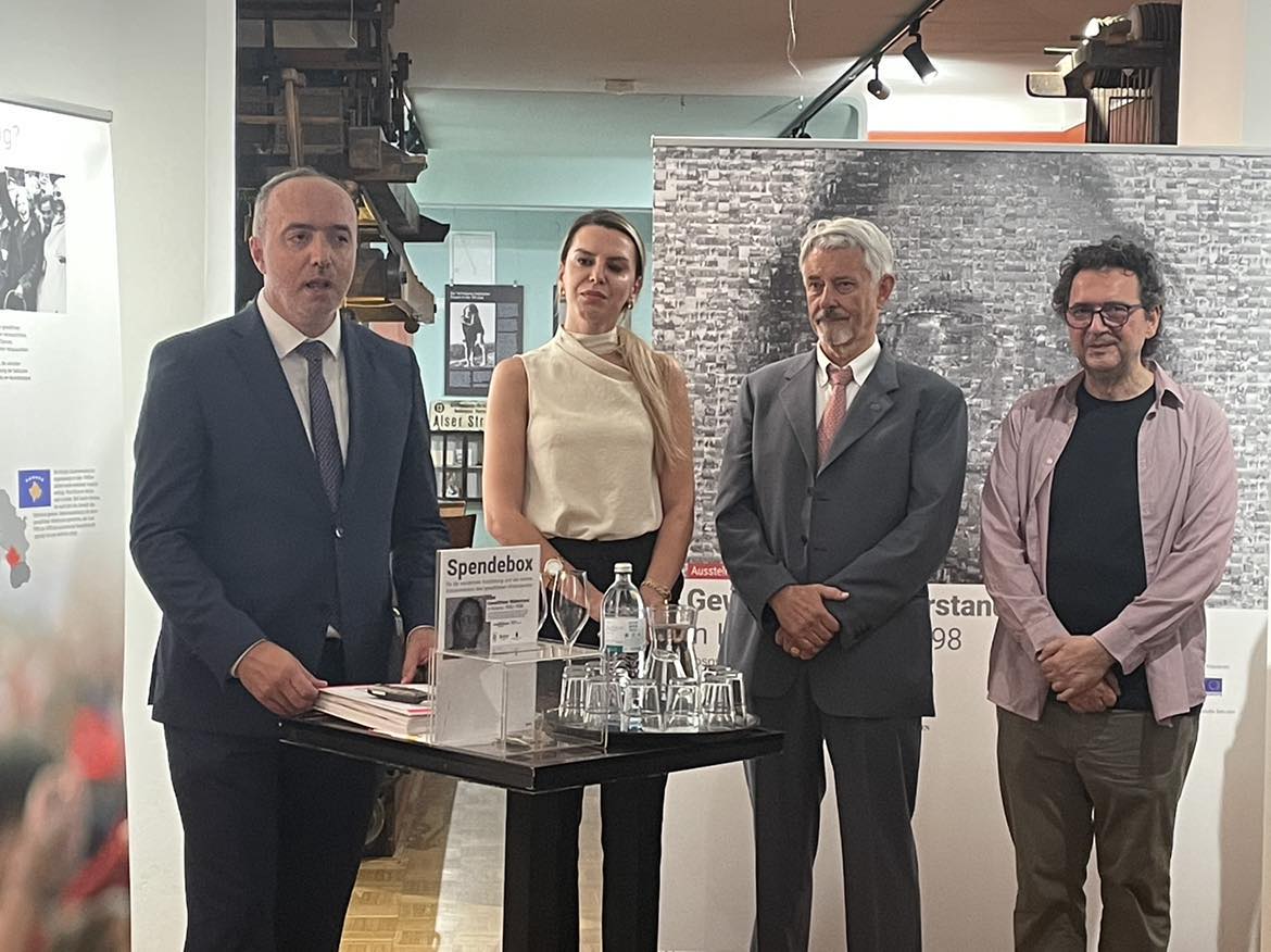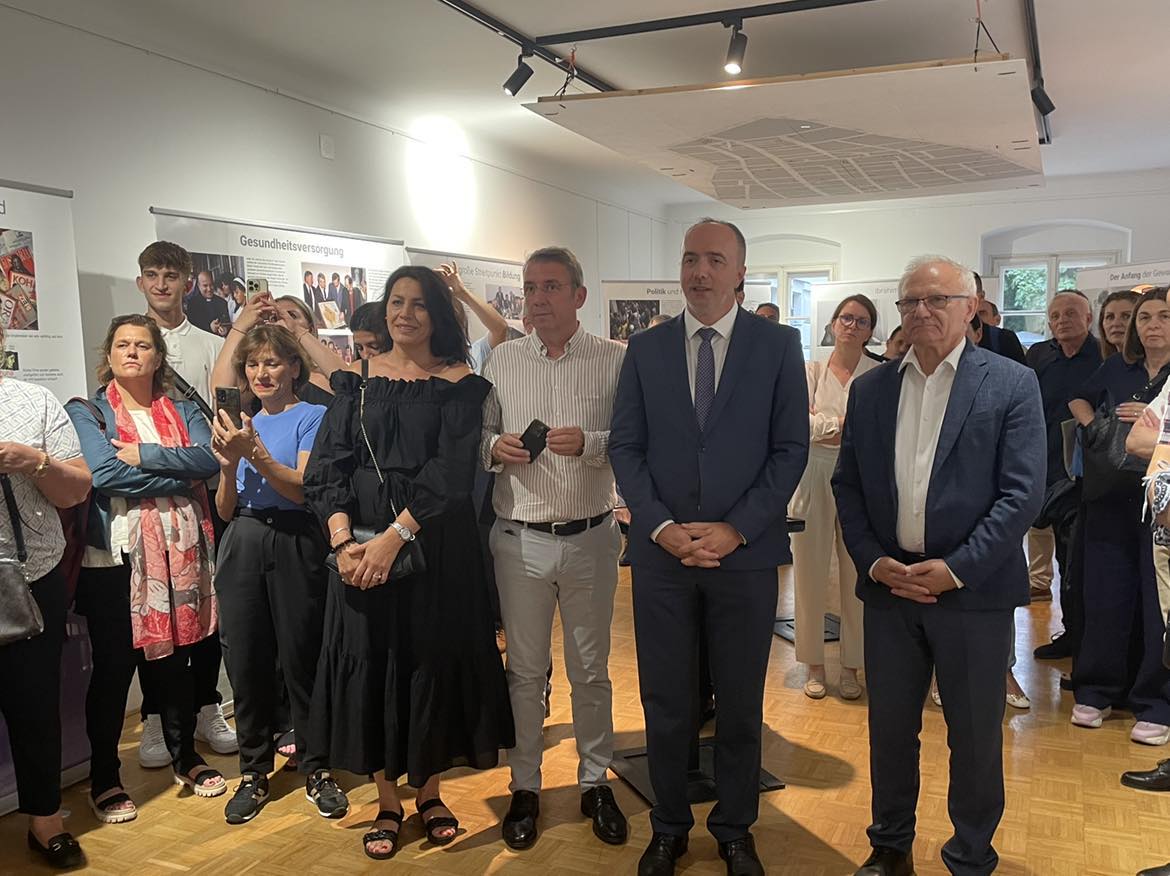 Fillimisht të pranishmit i përshëndeti këshilltarja lokale e Bashkimit Evropian, Kati Schneeberger, e cila e konsideroj si të nevojshme këtë ekspozitë për të mësuar më shumë për kohën e para luftës dhe rezistencës paqësore.