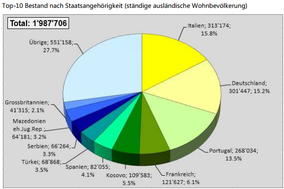 Popullata e huaj që ka përjetuar rritjen më të madhe gjatë këtyre nëntë muajve ka qenë ajo me pasaportë franceze, gjegjësisht kjo popullatë eshtë rritur për 7236 veta, transmeton albinfo.ch komunikatën e dërguar nga SEM. Në vendin e dytë janë të huajt nga Portugalia, me një rritje prej 6582 veta ndërs në të tretin janë italianët të cilët rritjes së numrit të gjithëmbarshëm të numrit të te huajve i kanë kontribuuar me 6546 të rinj.
