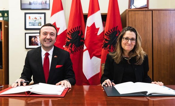 Për Kanadanë, marrëveshja u nënshkrua nga ministrja e Punëve të Jashtme, Chrystia Freeland, ndërsa për Republikën e Shqipërisë, nënshkroi ambasadori i Shqipërisë në Kanada, Ermal Muça.
