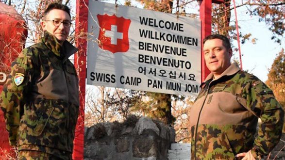 Në këtë zonë tepër të kontrolluar mes dy shteteve të një kombi, prej 65 vitesh patrullojnë edhe ushtarë zviceranë. Përndryshe në Panmunjon është prezenca më e gjatë e ushtrisë zvicerane në një vend të huaj, përcjell albinfo.ch. Në mes të vendit të asnjërit në gadishullin korean qëndron gjeneral majori Patrick Gauchat me një veturë të zezë dhe një flamur zviceran. Ai ka shërbyer edhe në misionet tjera të huaja si në Afrikë dhe Kosovë, ndërsa tani është përgjegjës për misionin në Panmunjom.
