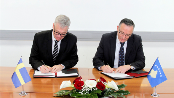 Ministri i Financave, Bedri Hamza dhe i ngarkuari me punën e ambasadorit të Suedisë në Kosovë, Anders Wollter, firmosën marrëveshjen për vazhdimin e mbështetjes financiare për projektin për vazhdimin e përmirësimit të sistemit të tatimit në pronë “Pro Tax 2”, në një shumë prej 3.2 milionë eurosh.