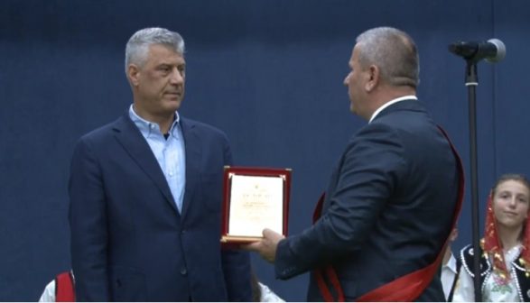 Dekorata për Thaçin u nda me “motivacionin për kontributin e pazëvendësueshëm për çlirimin e trojeve shqiptare, si lider politik i UÇK-së, si dhe për vlerësimin që presidenti Thaçi i ka dhënë popullit hasian si mbështetës i denjë gjatë luftës së Kosovës”.