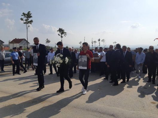 Mes mijëra të pranishëm, familjarë miq e kolegë por edhe zyrtarë të lartë të institucioneve të Kosovës po i thonë lamtumirë, Fadil Vokrrit.