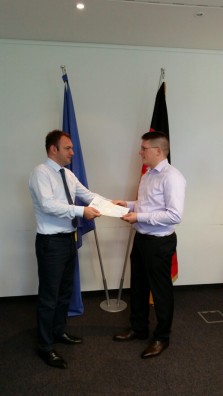 Në dy misionet më të mëdha diplomatike dhe konsullore të Republikës së Kosovës, në Gjermani dhe Zvicër, sot ka filluar lëshimi i certifikatave të gjendjes civile. Me këtë rast, në Konsullatën e Përgjithshme të Republikës së Kosovës në Munih u organizua një ceremoni rasti ku mori pjesë edhe Sekretari i Përgjithshëm i MPJ-së, Kreshnik Gashi.
