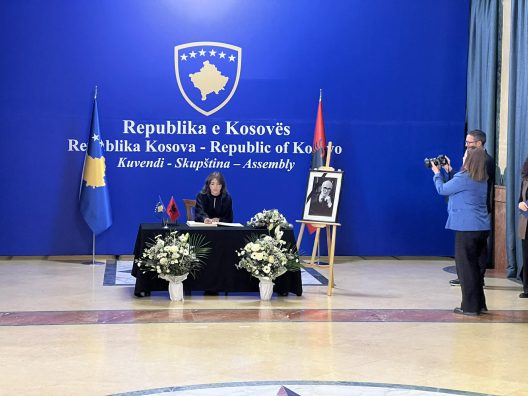Nën përkujdesjen e ushtrueses së detyrës së Presidentes së Kosovës, Albulena Haxhiu, po mbahet homazh përkujtimor, ndërsa është hapur edhe Libri i Zisë për të gjithë qytetarët që duan të shprehin respektin dhe ngushëllimet e tyre./Albinfo.ch