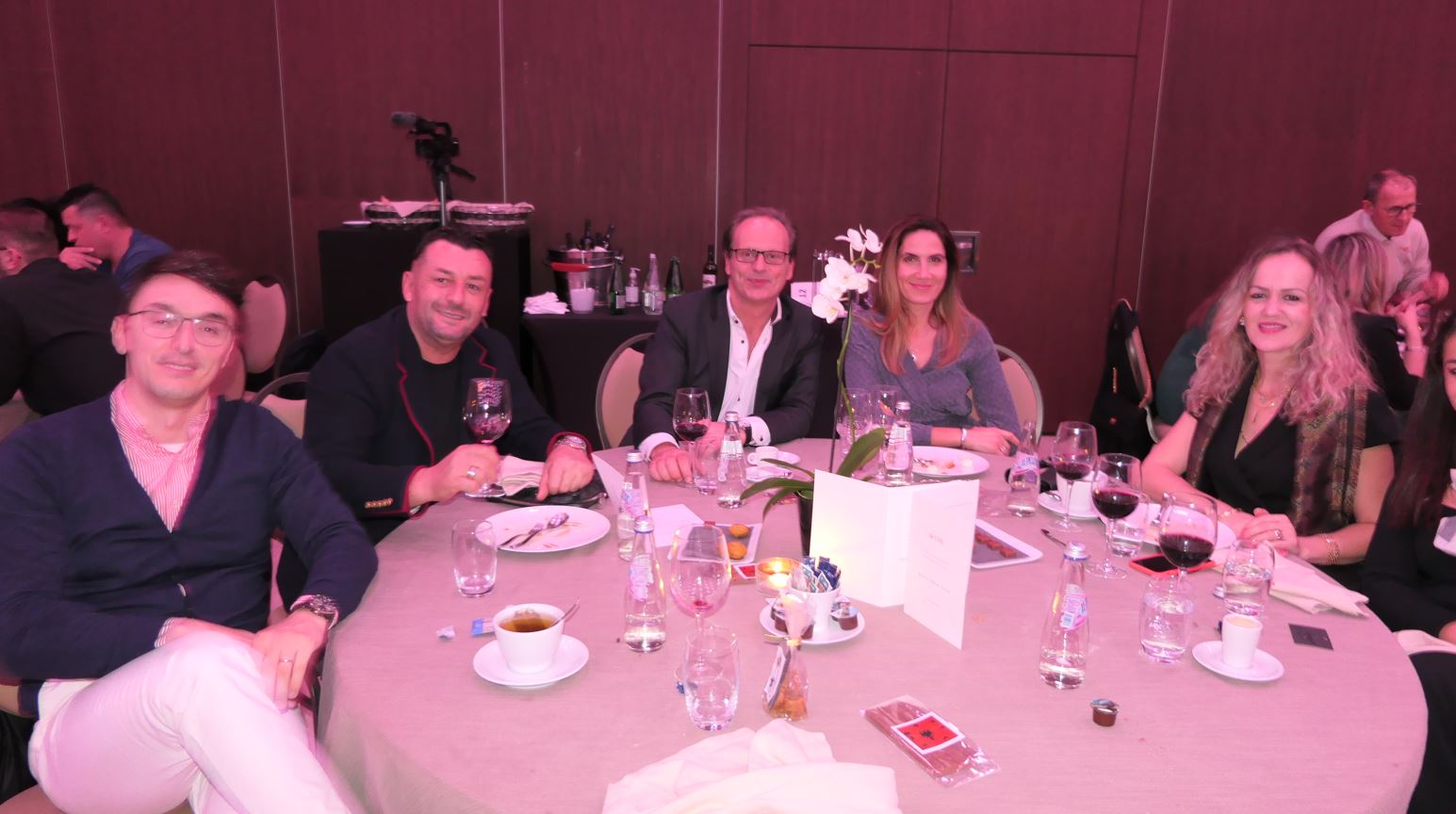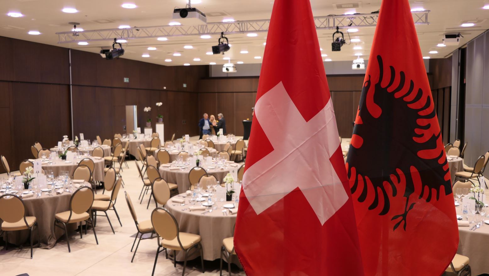 I LOVE Albania: është një copëz letre që i ngjitej bluzës së të ftuarve në shenjë mirëseradhje në mbrëmjen e organizuar me rastin e festës së flamurit. Dy studente të shkollës së lartë të Hotelerisë (Lozanë) që flisnin rrjedhshëm shqipen,frëngjishten dhe anglishten, udhëzonin të pranishmit në bazë të listës ku radhiteshin afro 130 rezervime. Me të hyrë në sallë, mysafirët zbuluan hapësirën elegante dhe luksoze ku do zhvillohej një program gazmor.Për këtë mbrëmje gëzimi dhe ribashkimi, të pranishmit u takuan në një atmosferë miqësore, festive dhe gustatore: ku kokteji luksuoz, mezet dhe verat, si dhe ushqimi me cilësi të lartë nuk munguan. Ajo që bie në pah për sytë e shqiptarëve, ishte vendosja e ujit të Tepelenës dhe të verës shqiptare Albatros. Gjithashtu, falë punës së studentëve të kryer deri në orët e vona të natës, mysafirët zbuluan në vendin e tyre nga një çokollatë zvicerane të mbështjelël me flamurin zviceran ose me figurën e Skenderbeut.
