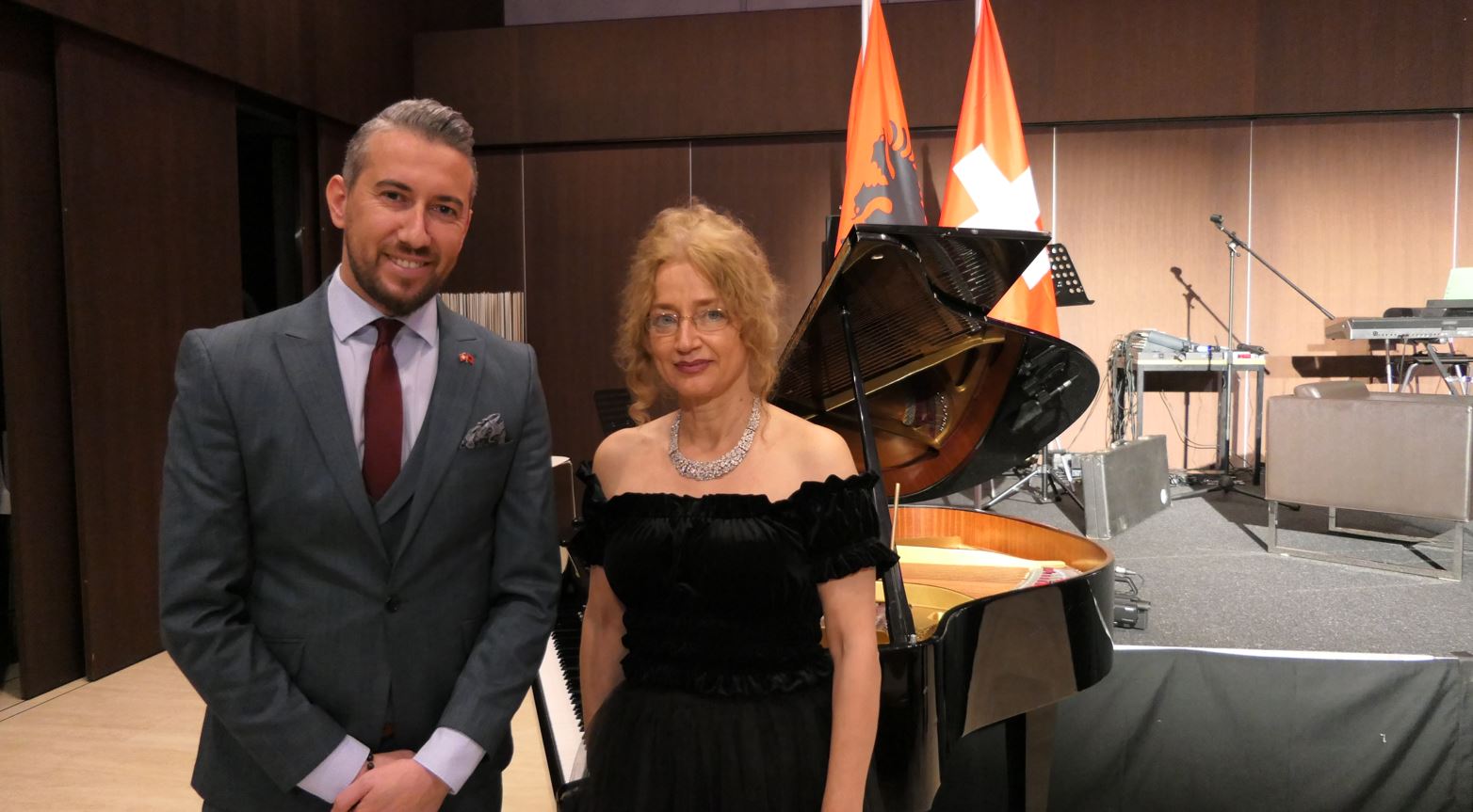 Pikënisja e mbrëmjes u bë madhështore falë mjeshtërisë dhe talentit të Ermira Lefort, në piano dhe zërit të Enkeleda Bashës. Të dyja artistet, i dhanë një jehonë të veçantë himnit shiqptar dhe zviceran. Më pas, të pranishmit duke i shoqëruar me zë ju falën një mori duartrokitjesh kur ato kënduan me plot shpirt këngët Atdheu im, Lule Borë, Këngë moj .