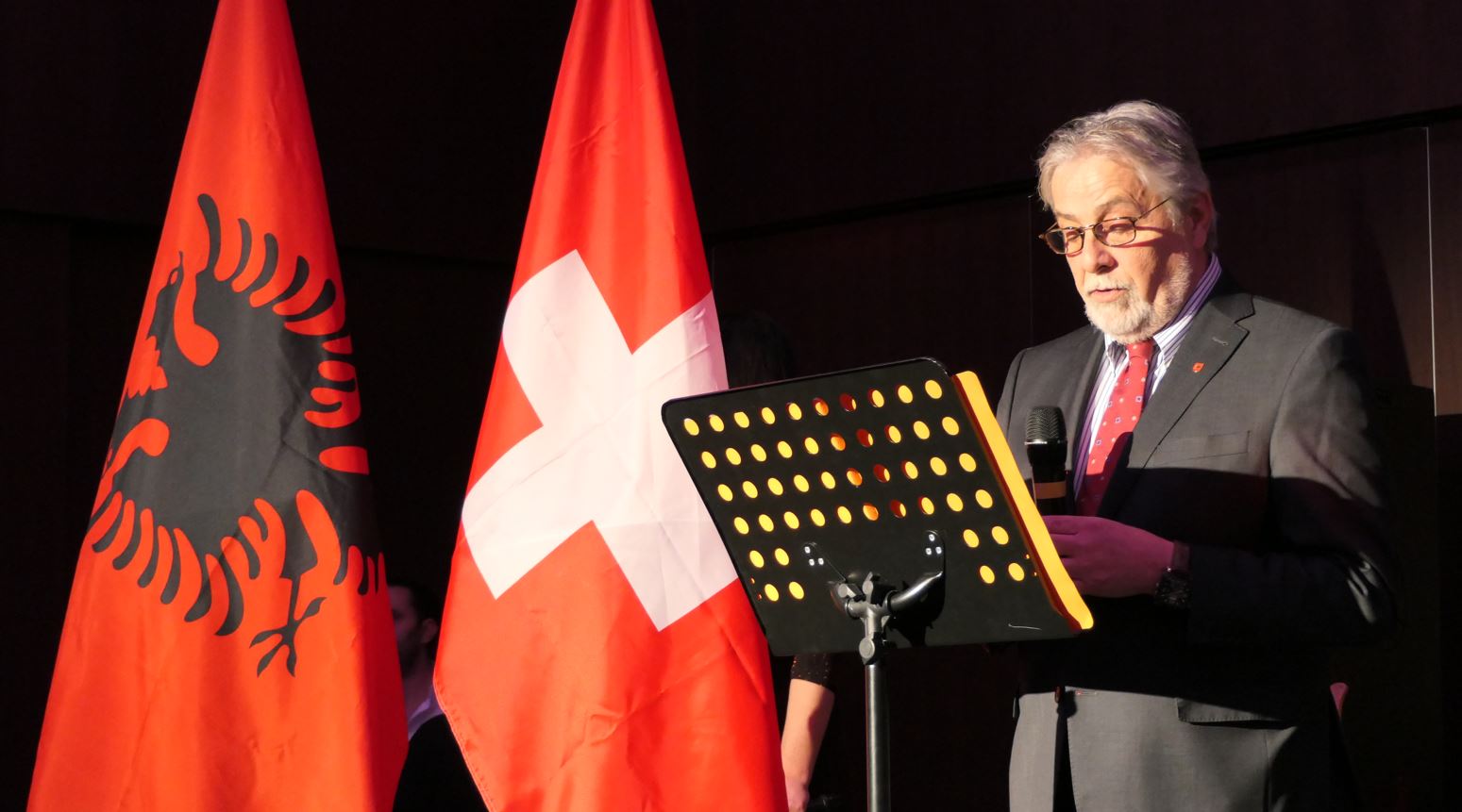 Vjosa Gërvalla, drejtuese e mbrëmjes, dhe njëkohësisht drejtoreshë e shoqatës albinfo.ch, shpalosi programin e saj me këto fjalë: “Ne donim një festë ndryshe, dhe falë vullnetit të mirë të grupit punues, ja arritem. Dita e Flamurit është ndoshta data më e rëndësishme e vitit, pothuajse për të gjithë shqiptarët. 28Nëntori mbart githë kujtesën e zymtë dhe të hareshme të historisë sonë si shoqëri, si popull. Arsyeja pse ne festojmë këtë ditë me kaq shumë dashuri, është sepse ajo na kujton betejat, pikëllimet, dëshpërimin, rrëmujën, zëmërimet tona, herë herë edhe humbjet apo tragjeditë tona, por mbi të gjitha, kjo festë, në pavetëdijen tonë kolektive, na kujton sa e rendësishme dhe e bukur është fryma solidare dhe sa e madhe dhe e bukur është dashuria e pakusht që kemi për mbrojtjen e kulturës sonë. Po kjo dashuri, të cilën Einstein e quante gjeneratori më i fuqishëm për të ndryshuar fatin e njërzimit, na ndihmoi në momentet më të vështira të historisë sonë, duke e bërë të pamudurën të mundur, njëherë Pavarësinë e Shipërisë para 109 vjetësh, dhe më pas, pavarësinë e Kosovës.”