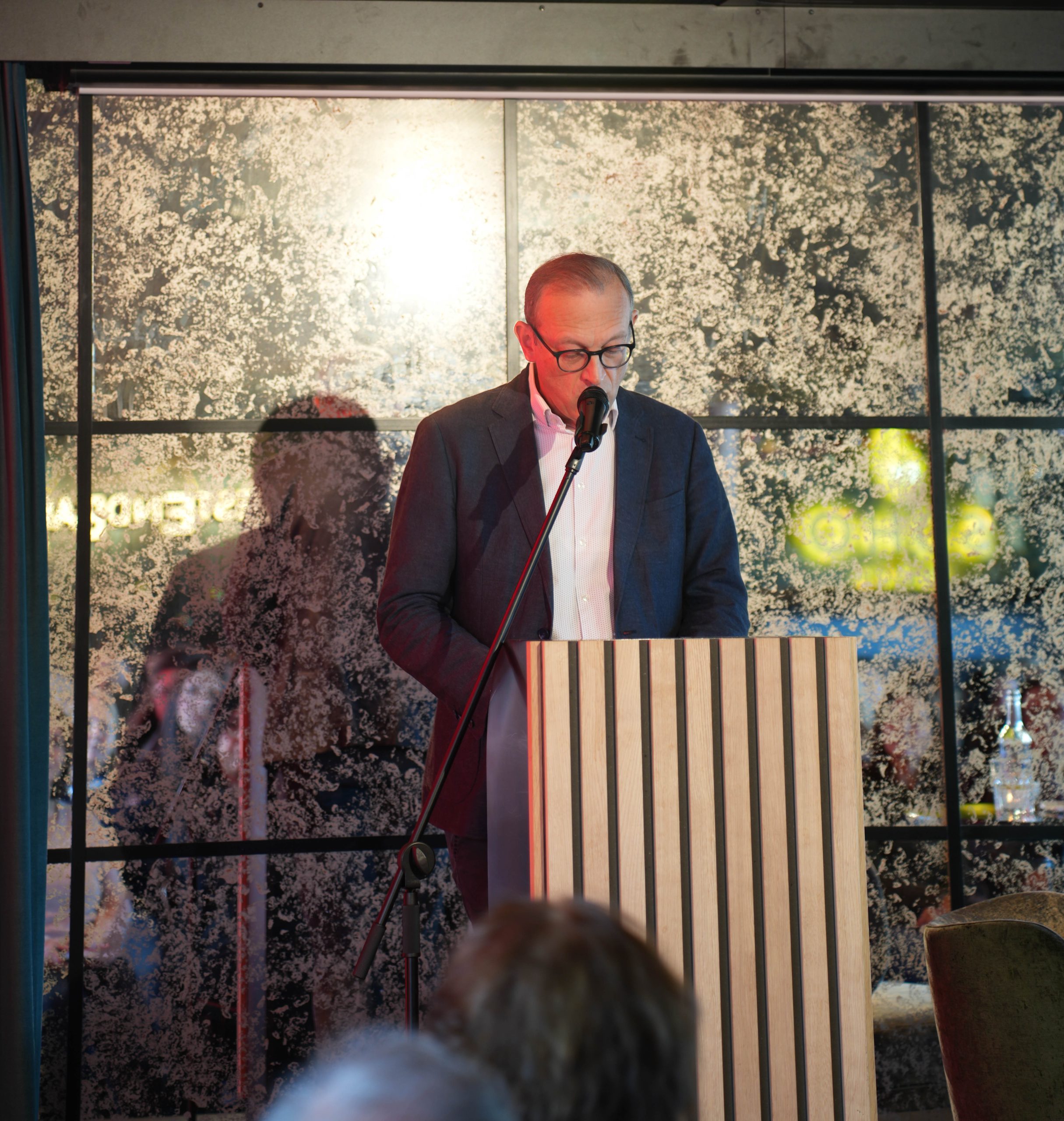 Botuesi Enver Robelli, udhëheqës i Shtëpisë Botuese “Dora d’Istria” Libraria | Dora Books 1, hapi promovimin me një fjalim të thellë, të ndërtuar me finesë dhe ironi të butë. Ai foli për ritmet e fundvitit, për “apostujt e konsumerizmit” dhe klimën e stërngarkuar të dhjetorit. Në këtë kontekst, prania e publikut ishte për të një shenjë e madhe shprese: “Pas të Premtes së Zezë vjen e Shtuna e Bardhë,” tha ai, duke dhuruar buzëqeshje dhe reflektim.
