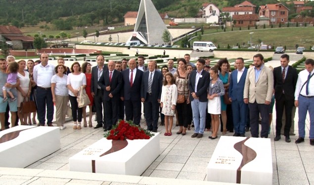 Një grup bashkatdhetarësh dhe qytetarësh të tjerë, të prirë nga ministri i Diasporës në Qeverinë e Kosovës, Valon Murati, fillimisht kanë bërë homazhe në varrezat e Jasharajve.