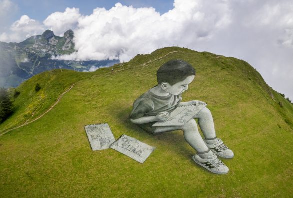 Bëhet e ditur se në shpatet e malit në një fshat të Zvicrës, artisti Saype ka realizuar këto piktura gjigante.