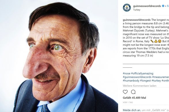 Ajo është hunda e Mehmet Ozyurek nga Turqia, që rekordin e mban që prej vitit 2010 kur e fitoi çmimin në një emision në Romë