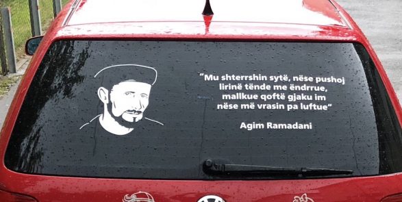 “Për dy vite kam menduar si mundë ta nderoj këtë trim, dhe në vitin 2016 vendosa të blej një veturë me ngjyrë të kuqe dhe ta veshi me flamurin tonë kombëtar. Pastaj vendosa komandantin Agim Ramadanin në xhamin mbrapa, që ta kemë kudo që jam fotografinë dhe poezinë e tij të shkruar: Mu shterrshin sytë, nëse pushoj lirinë tënde më ëndrrue, mallkue qoftë gjaku im nëse më vrasin pa luftue.”