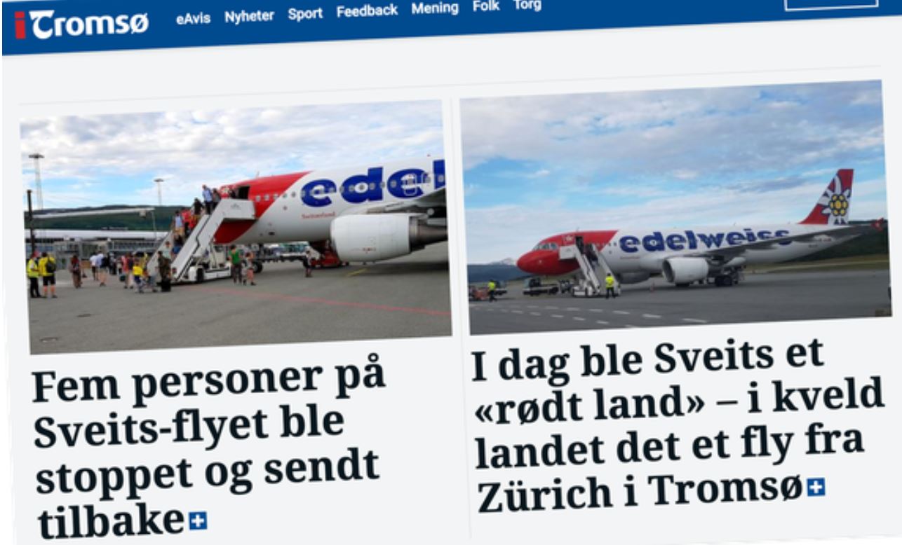 Rreth rastit ka reportuar mediumi norvegjez iTromsø, transmeton portali zviceran watson.ch. “Pesë vetë në aeroplanin zviceran u ndaluan dhe u kthyen mbrapsht” mund të lexohet në titullin e gazetës.