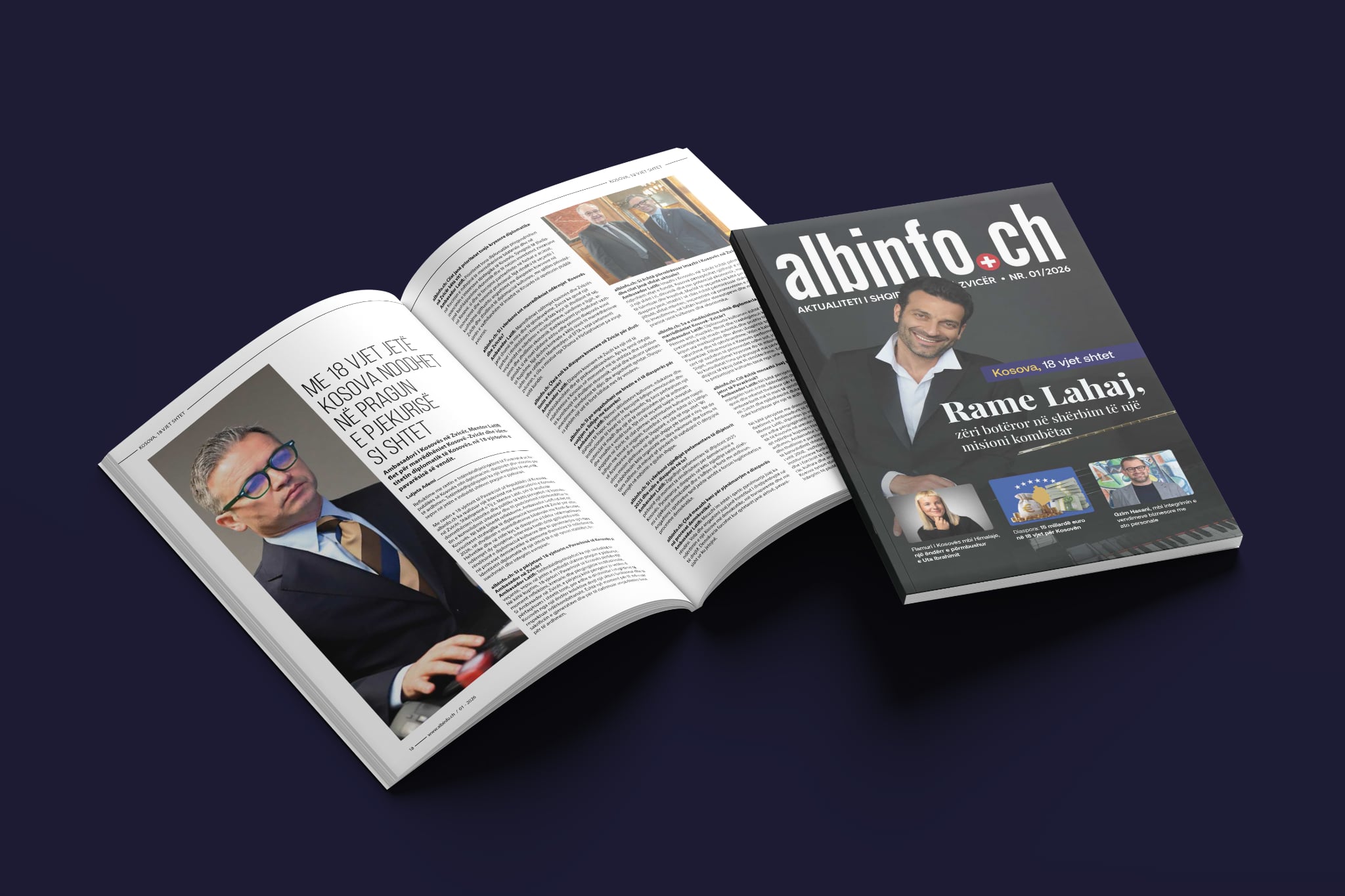 Temën bosht të këtij numri të revistës, përvjetorin e 18-të Pavarësisë së Kosovës e rrumbullakëson intervist me ambasadorin e Republikës së Kosovës në Zvicër, Shkëlqesinë e Tij, Mentor Latifi. Ai i referohet këtij përvjetori si “hyrje në moshën e pjekurisë” të një shteti, siç është Kosova.